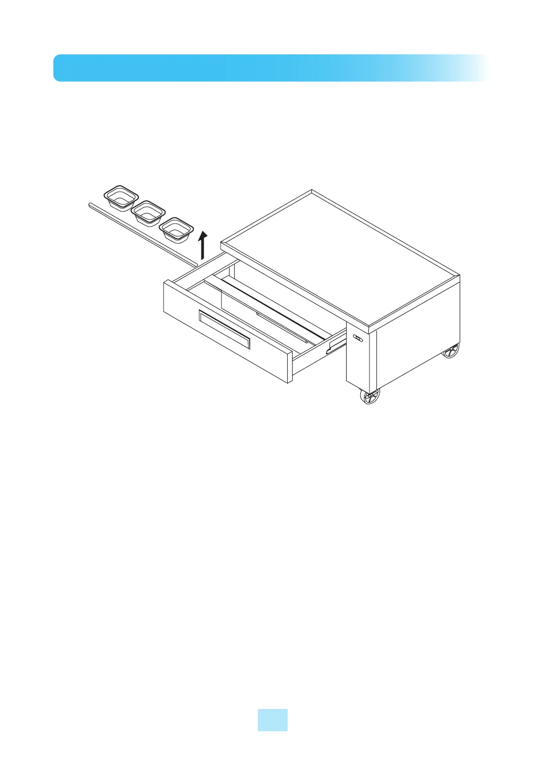 1) Pull out the drawer and remove the Pan-guide and pans.