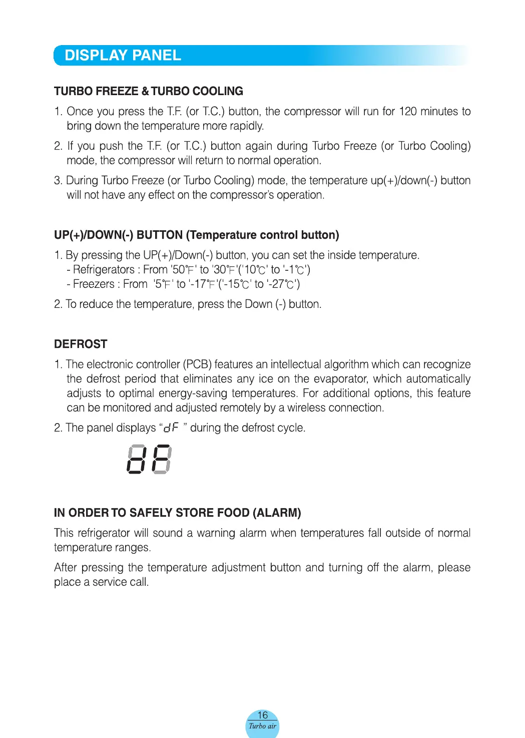 Bekijk gratis de handleiding van Turbo Air TGF-35SD-N, stel vragen en lees de antwoorden op veelvoorkomende problemen, of gebruik onze assistent om sneller informatie in de handleiding te vinden of uitleg te krijgen over specifieke functies.