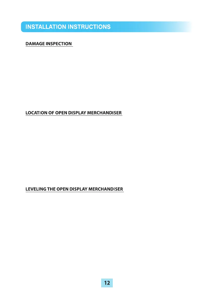 Four leveling legs are provided to level your Merchandiser. Use a leveler to ensure the