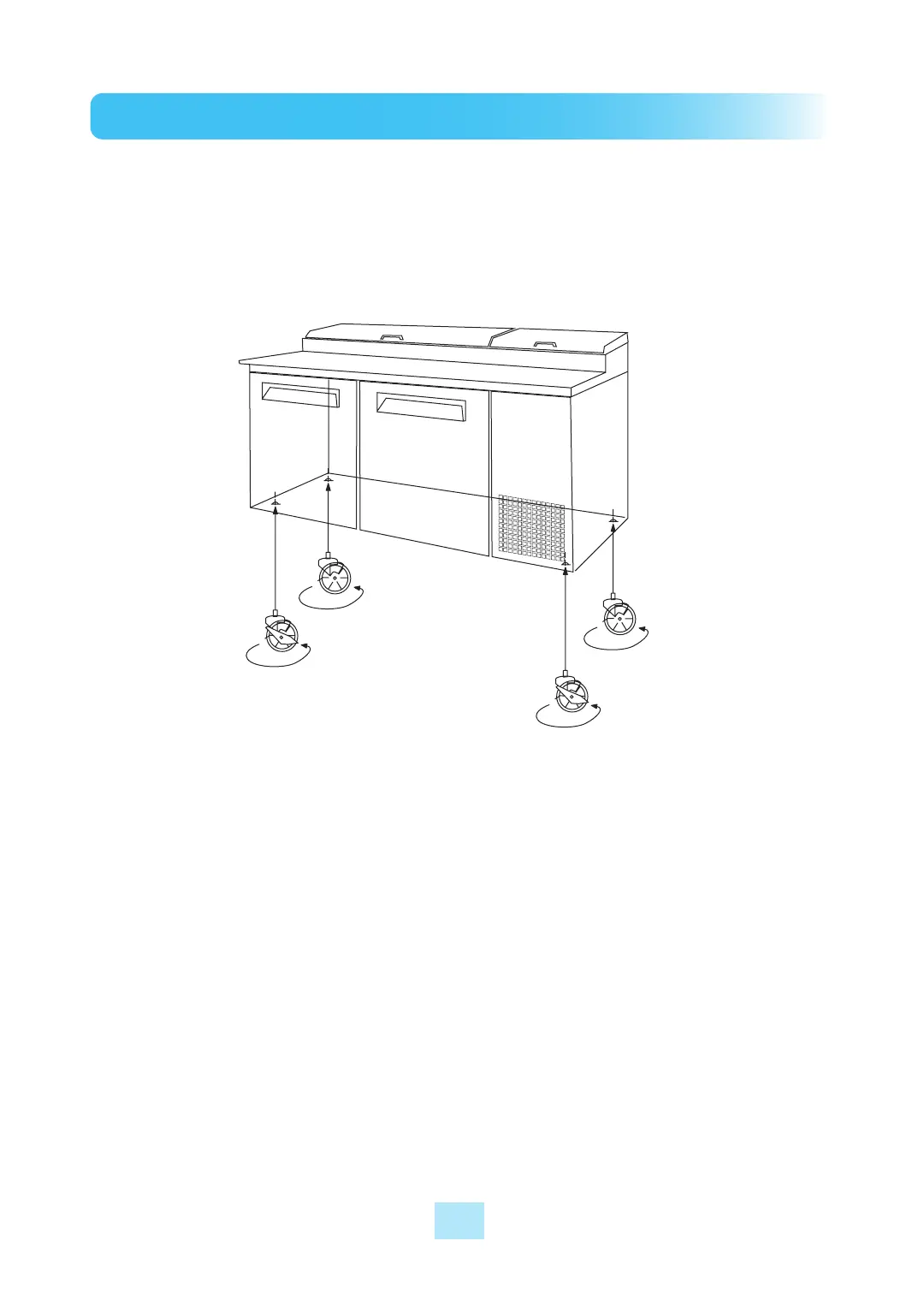 2) Use the caster shims to level the cabinet, if necessary, by inserting them