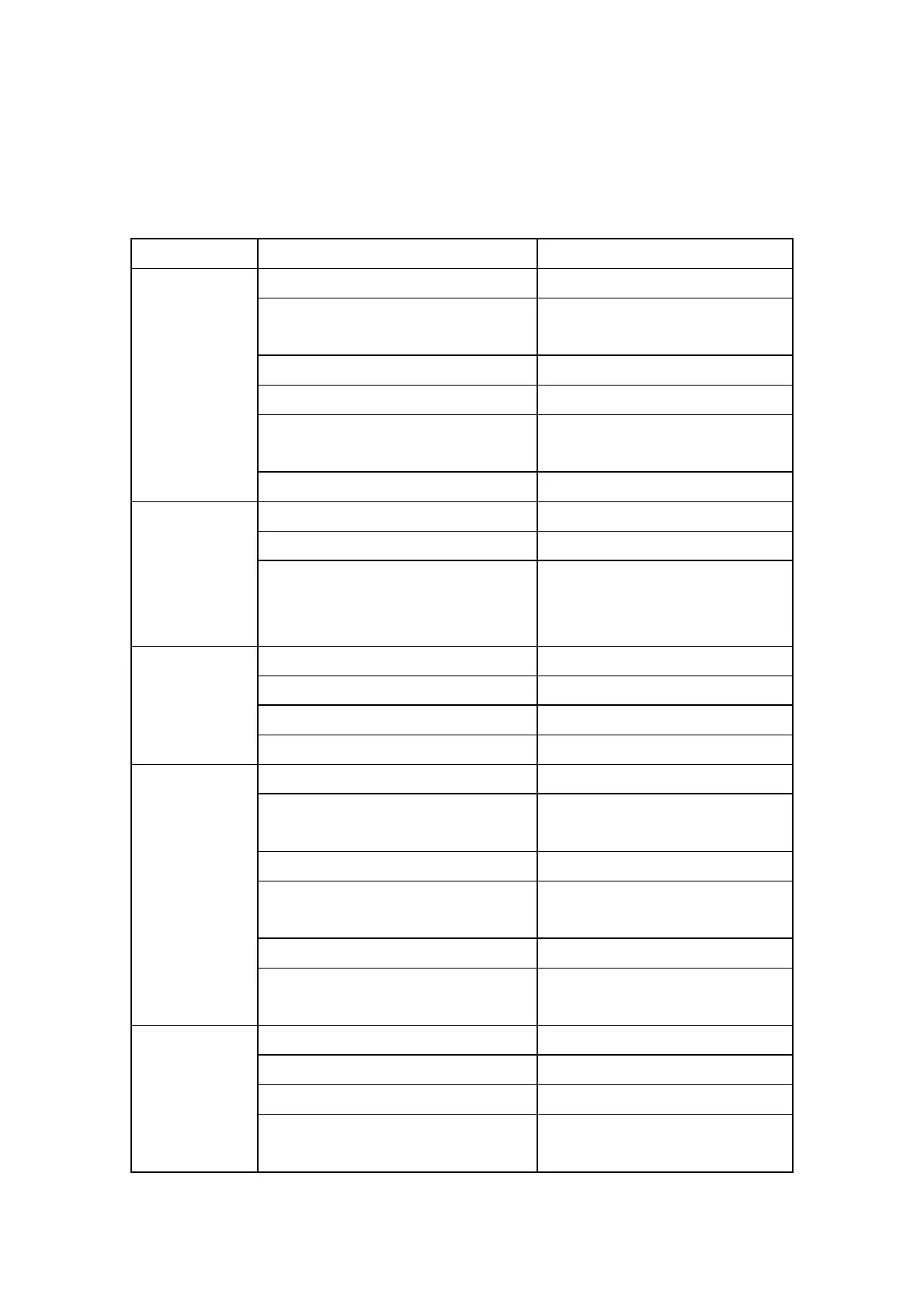 Symptoms Possible causes Solution