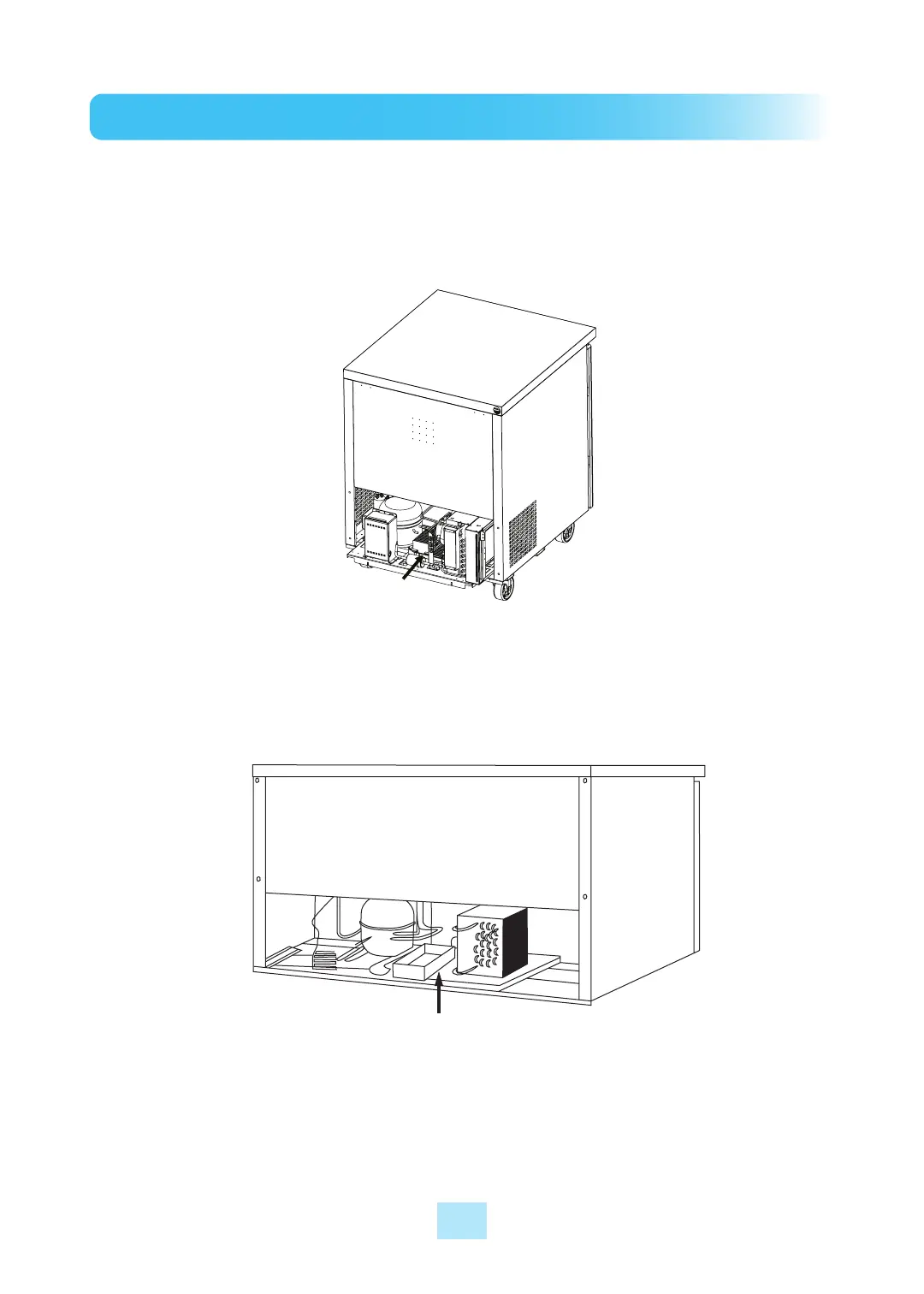 2) When installing the drain pan in the compressor mounted base, slightly lift vaporizing