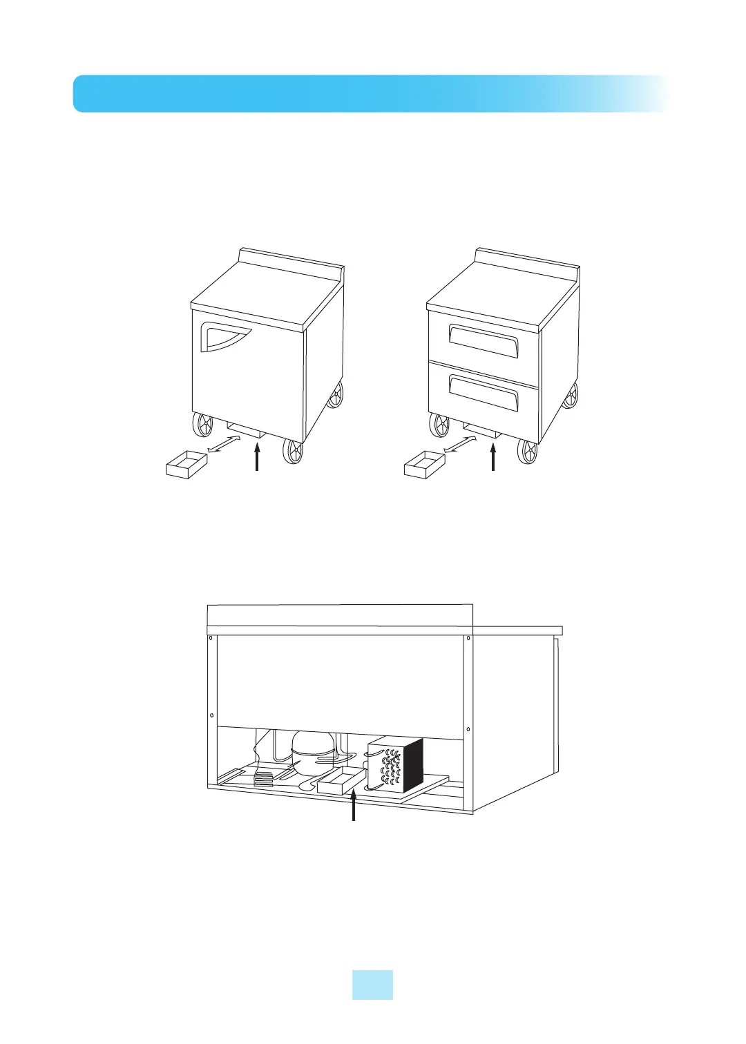 2) When installing the drain pan in the compressor mounted base, slightly lift vaporizing