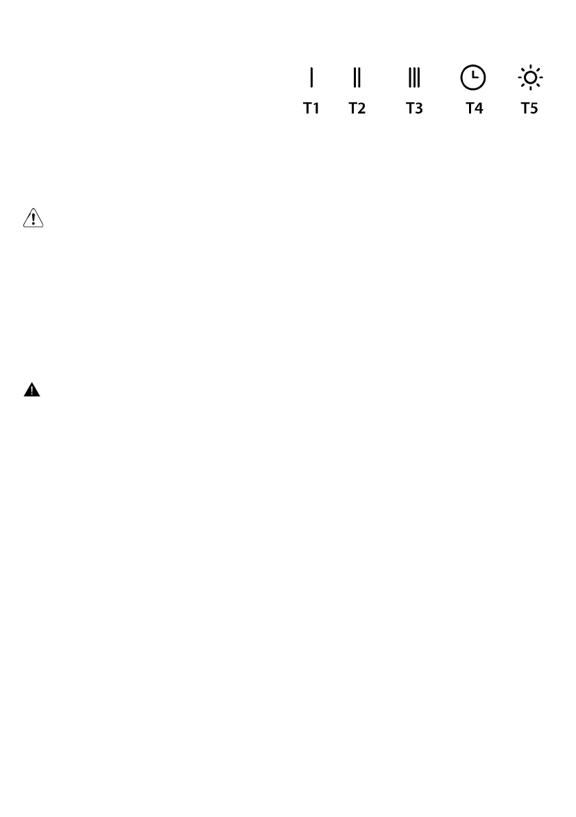 T5. Kun toiminto on päällä, LED palaa yhtäjaksoisesti.