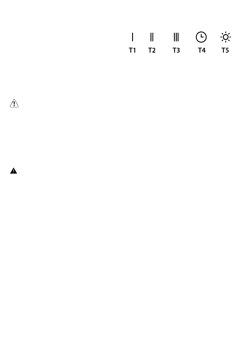 T5. Když je funkce aktivována, LED dioda se rozsvítí pevným