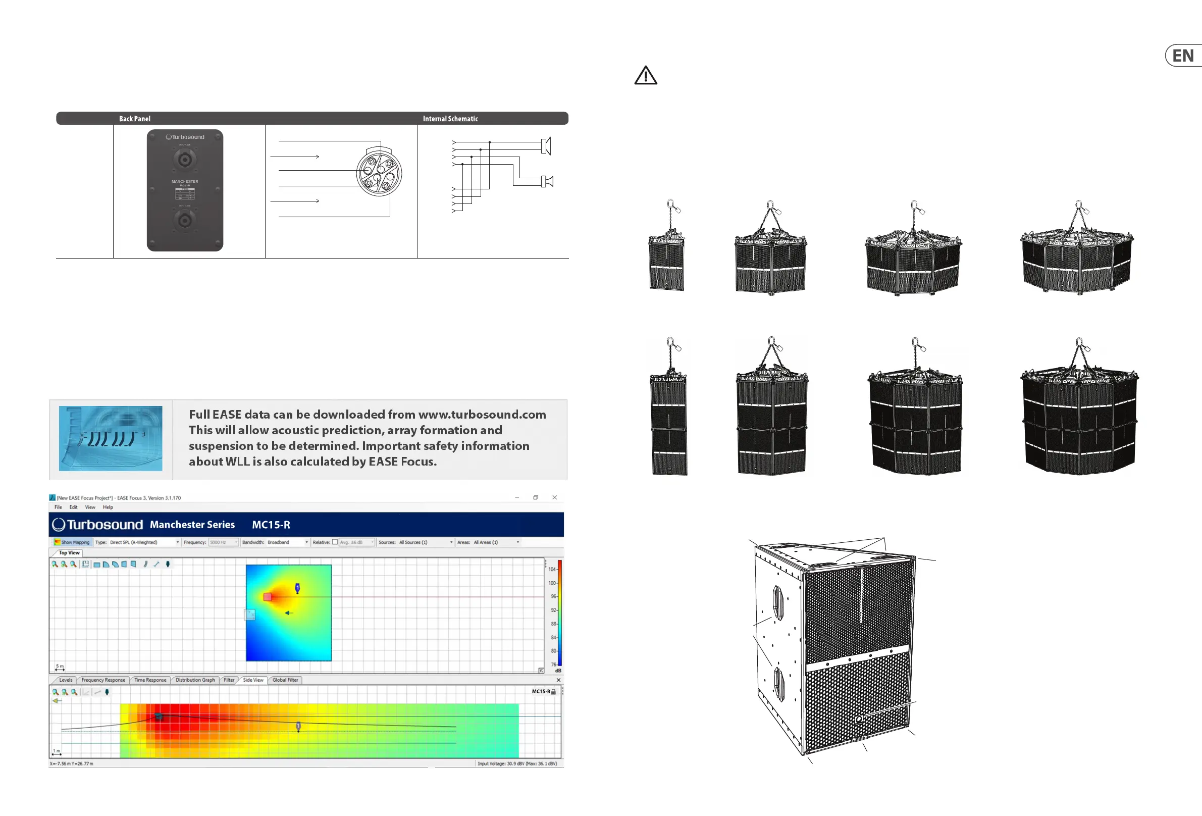 The MC15-R is an arrayable product, and it is supported in Ease Focus 3 for either stand alone use, with Manchester series subwoofers or as part of larger