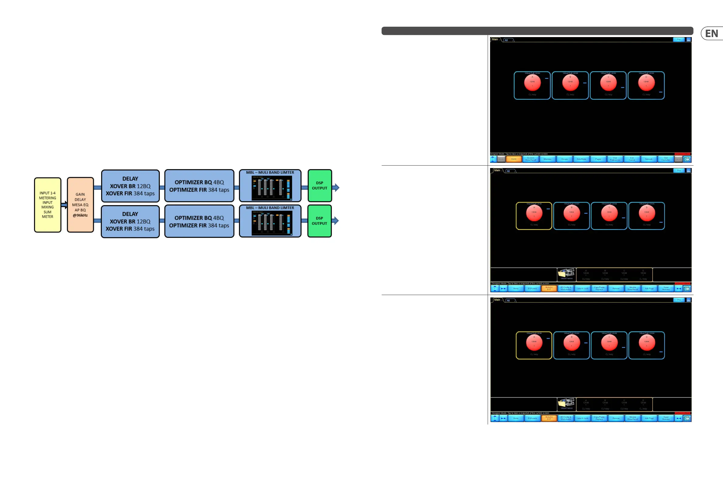 TQ12M and TQ14M loudspeakers each have individual 1 way passive and 2 way Bi-Amp FIR base pre-sets (1 channel DSP/AMP, Bi-Amp 2 channel DSP/AMP), full range