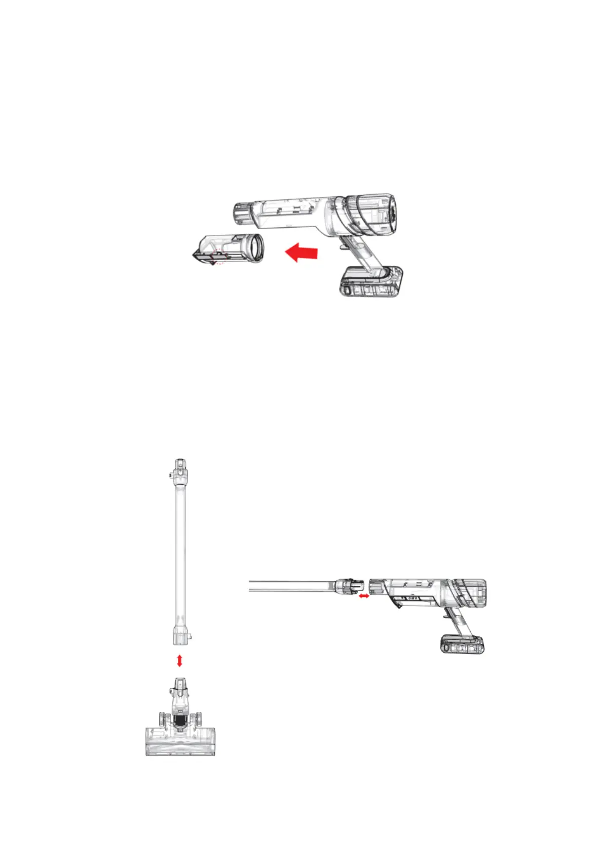 1 Push the floor brush gently towards the end of its extension tube and hear a “click”