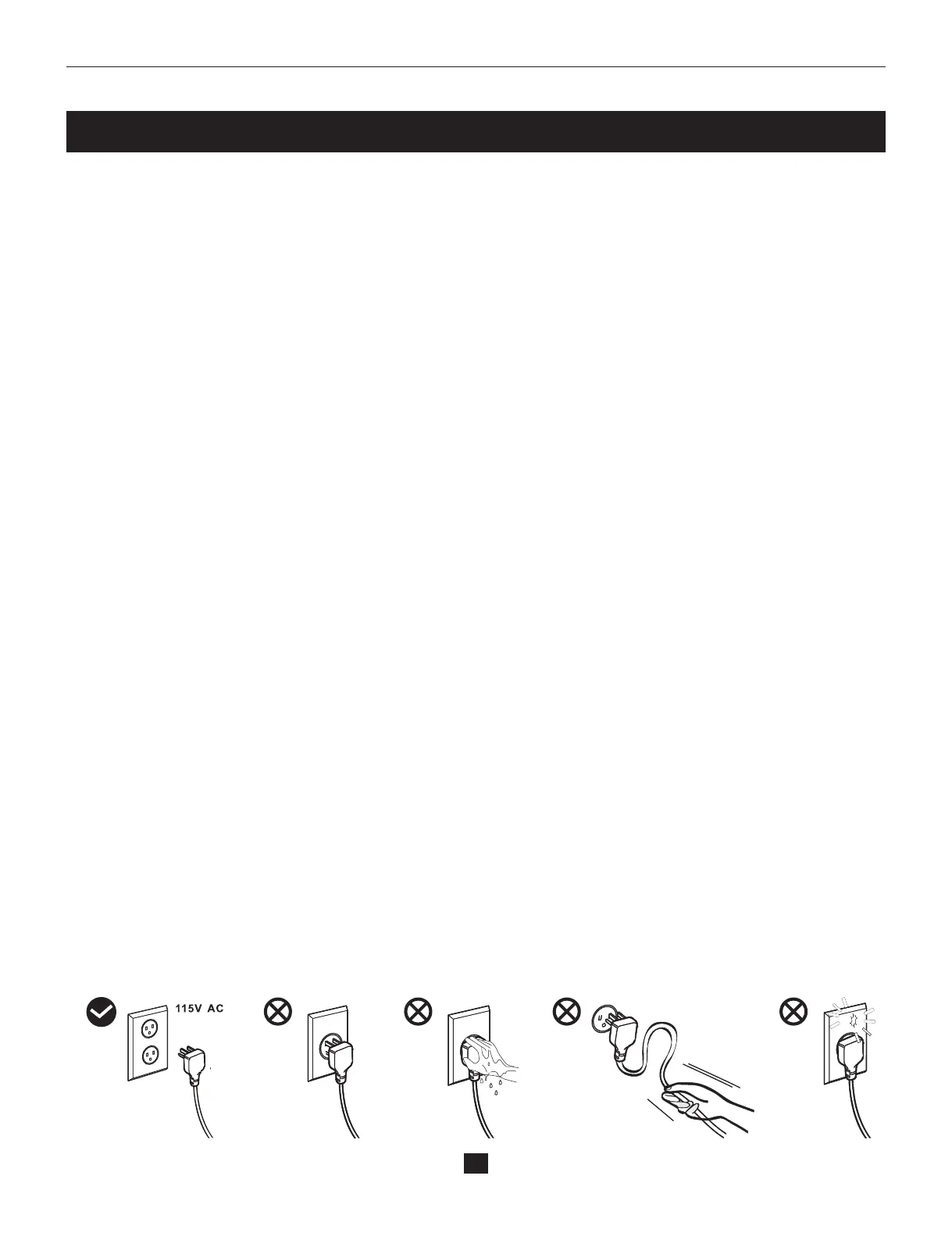 ● Push the power plug all the way into the wall outlet so that it will not loose.