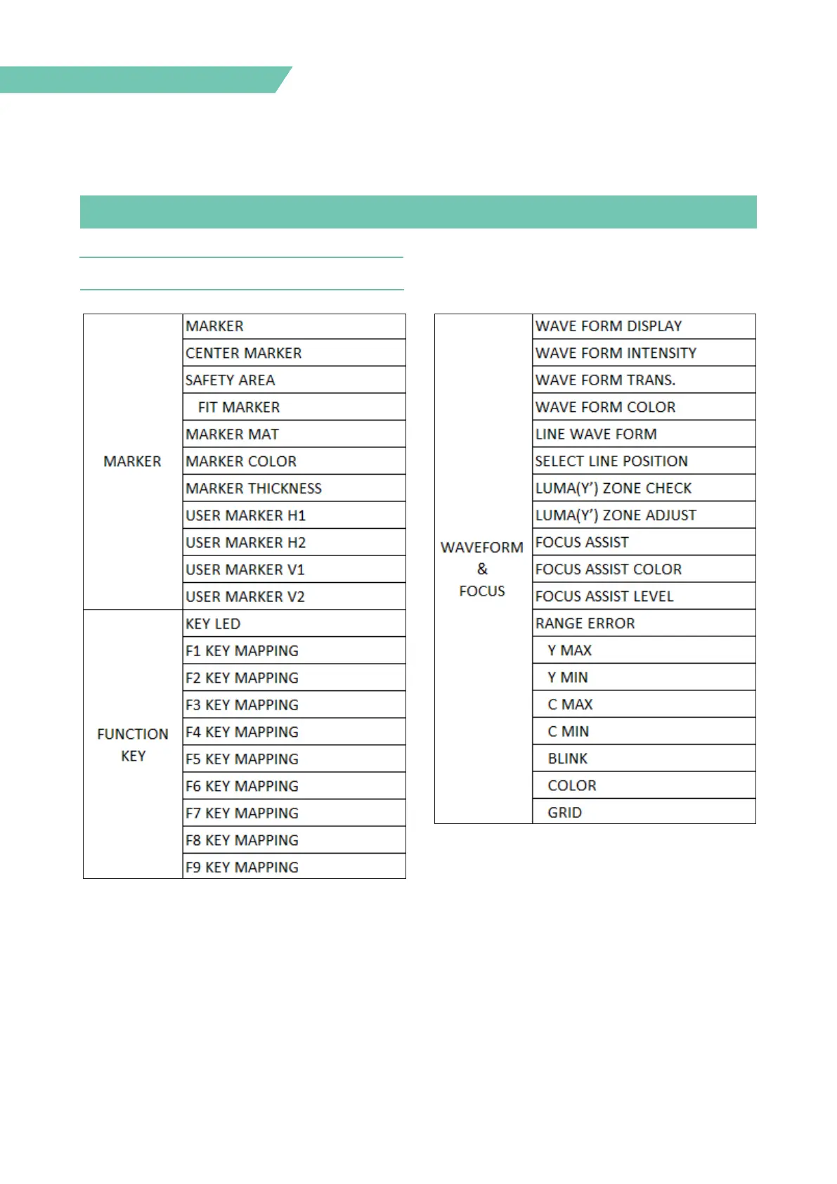 MENU CONSTRUCTION & MENU CONTROL & MENU CONTROL SEQUENCE & MENU TREE