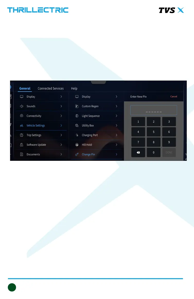 ¾ Under vehicle setting menu navigate to the change pin menu.