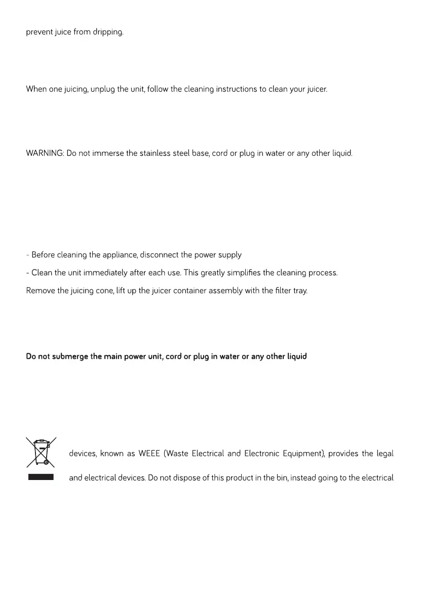Remove the filter tray, discard pulp and/or pits. Rinse in warm soapy water.