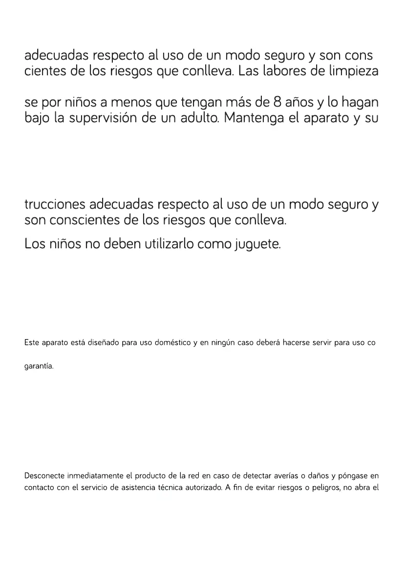 mercial o industrial. Cualquier uso incorrecto o manejo inadecuado del producto anulará e invalidará la