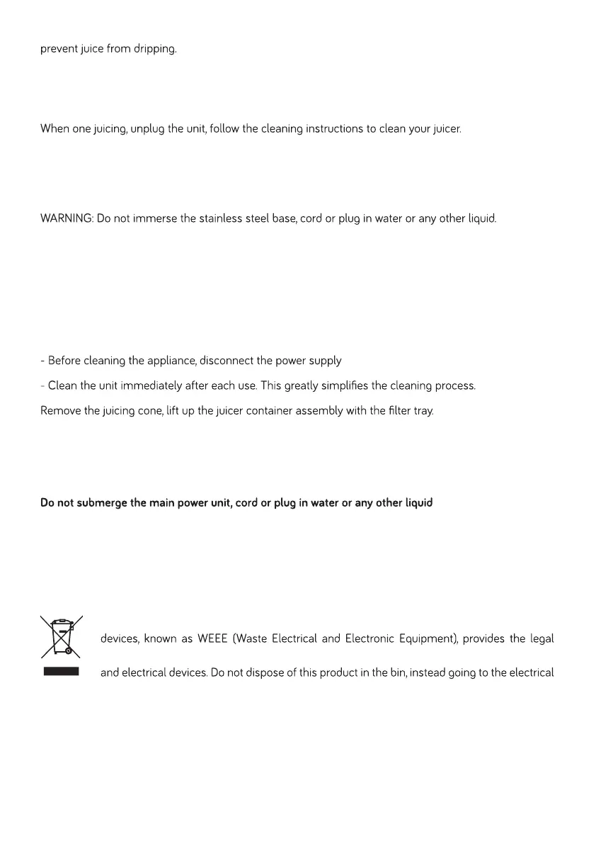 Remove the filter tray, discard pulp and/or pits. Rinse in warm soapy water.