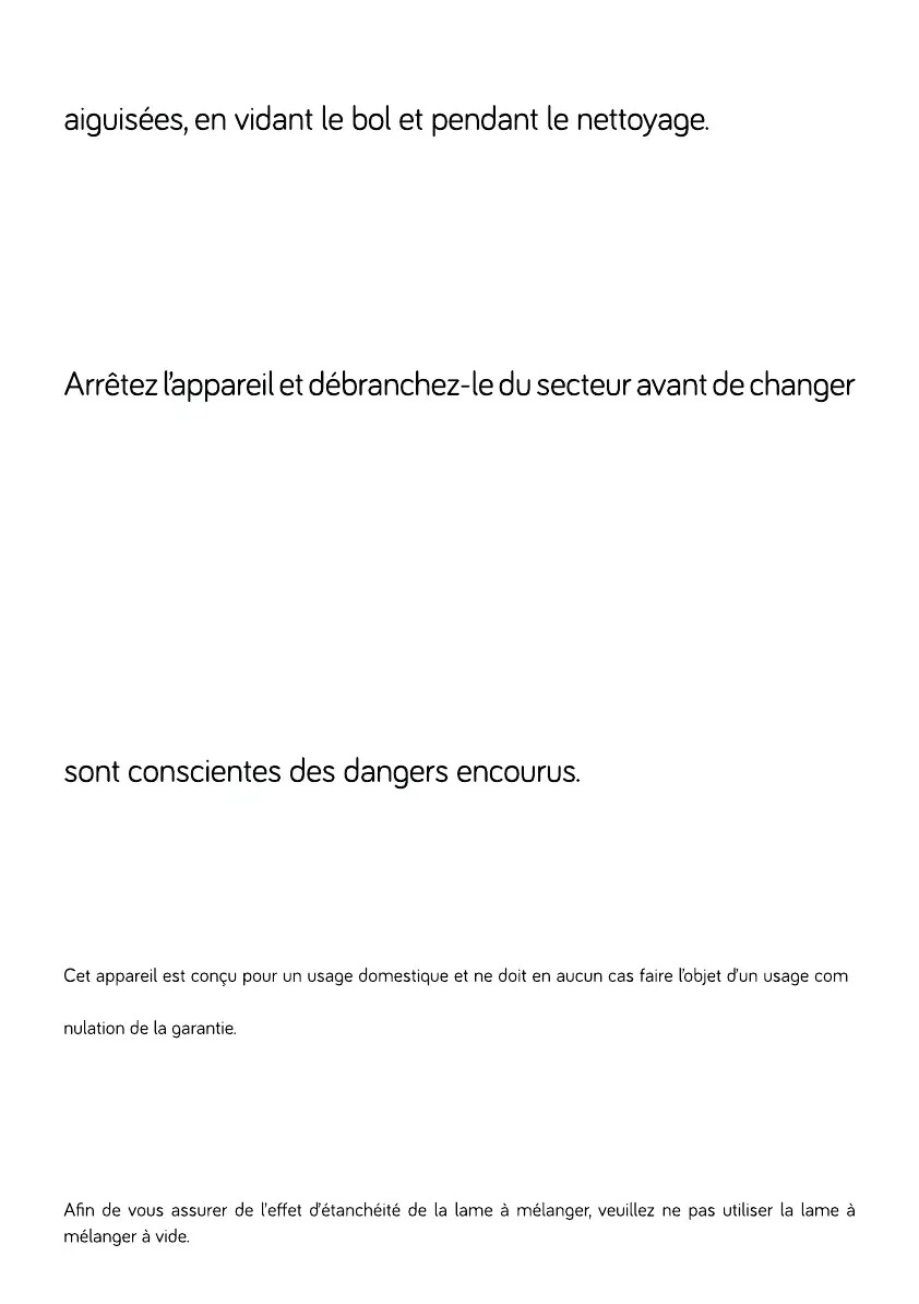 Débranchez toujours le blender du secteur si vous le laissez