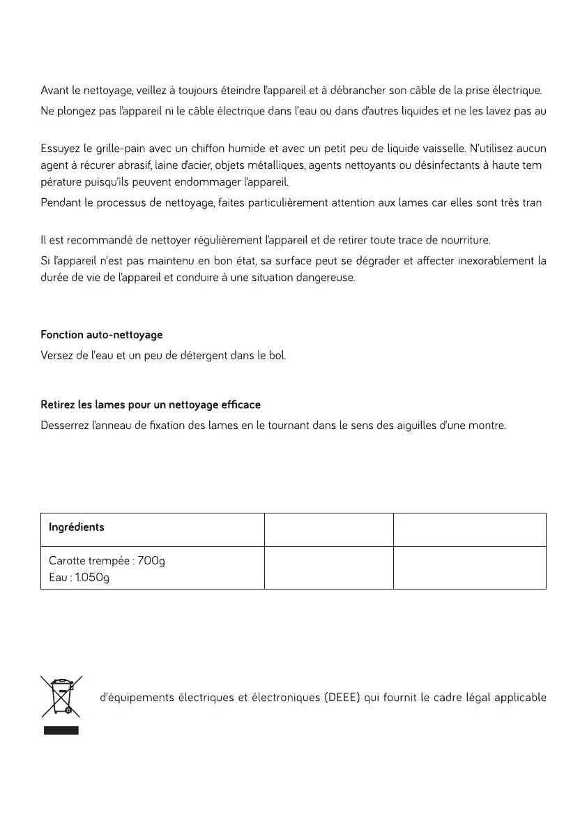 Retirez l’anneau de fixation des lames et nettoyez toutes les pièces.