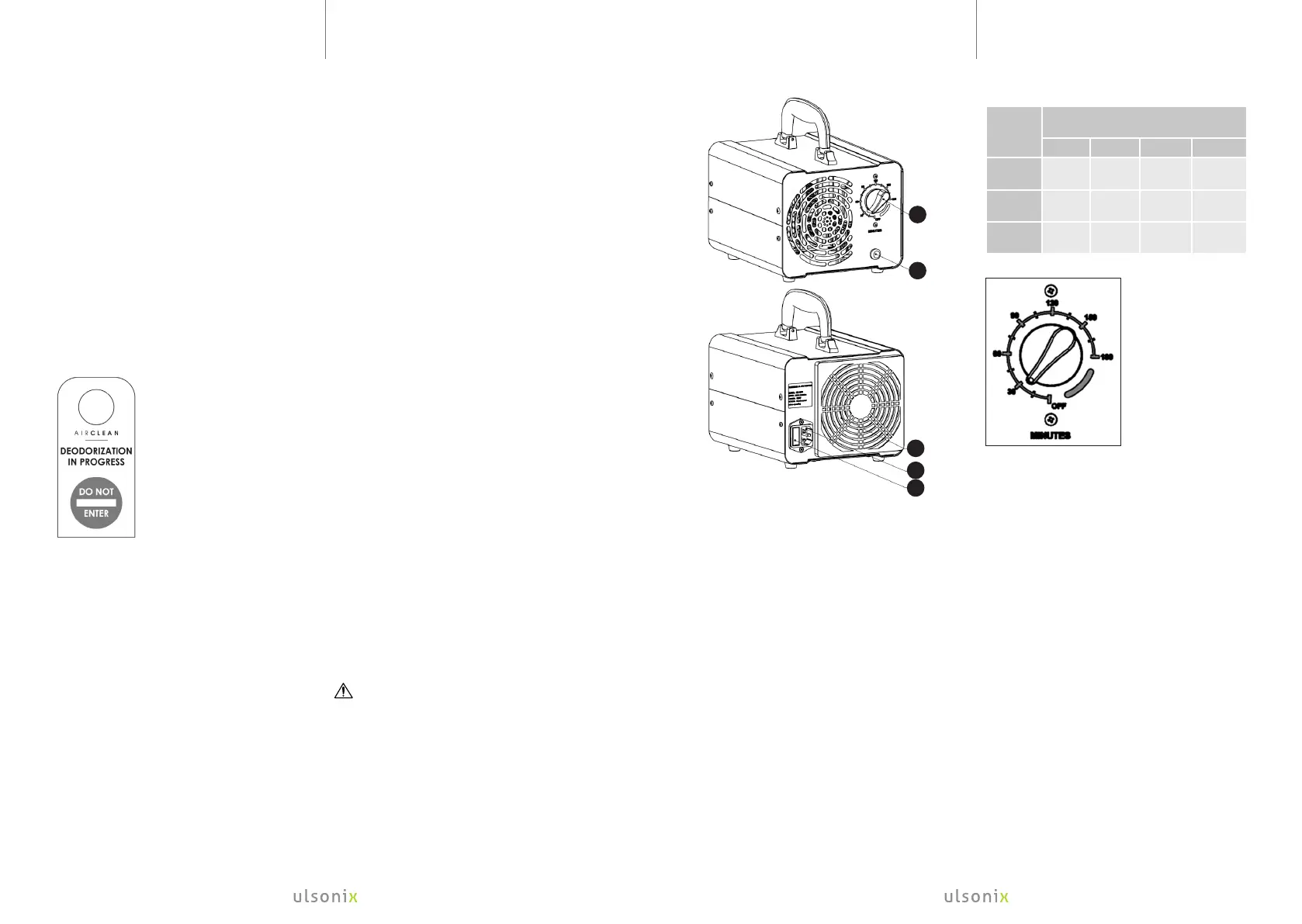 NOTE !: Use the device only in empty rooms! Ozone is an