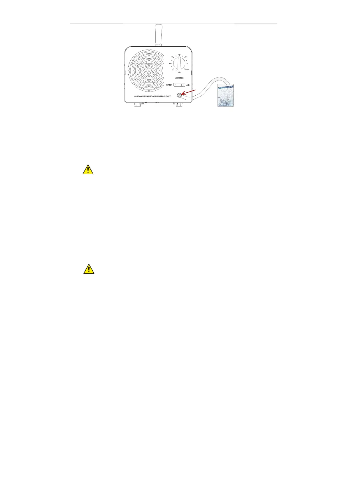 Before ozoning in WATER mode, connect the tube to the ozone outlet connector.