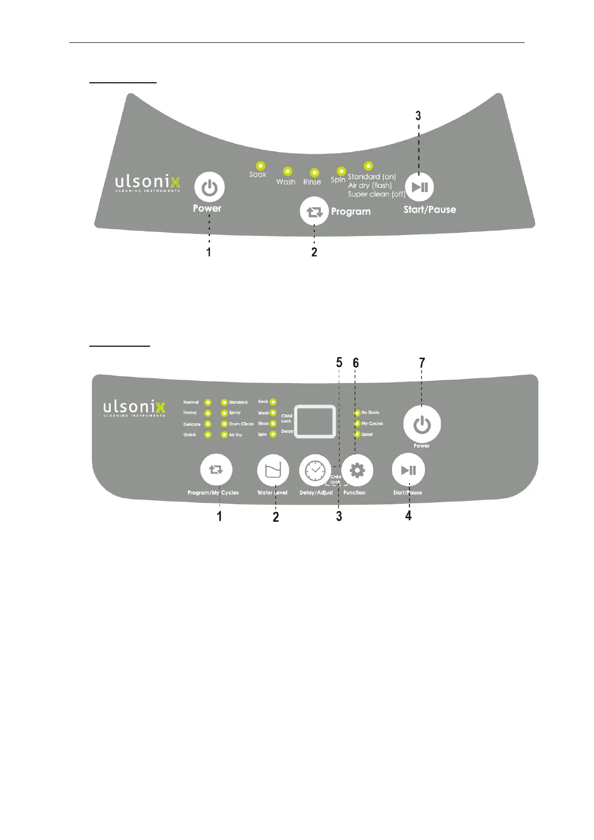 3 – Start / Pause – Trykk på knappen for å starte etter å ha valgt vannnivå og program. trykk på knappen