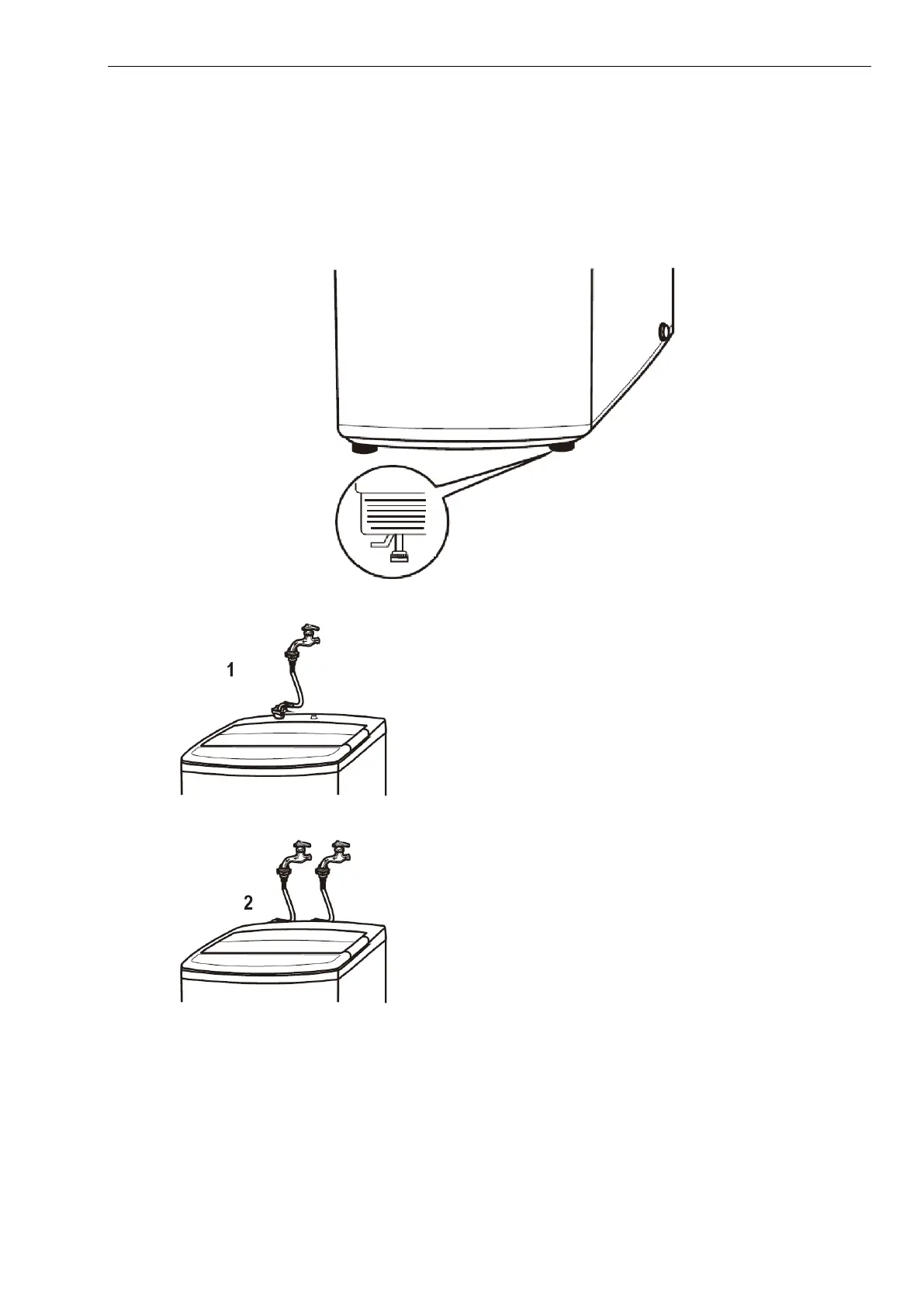 1. Wyregulować stopki, aby pralka była stabilnie umieszczona.