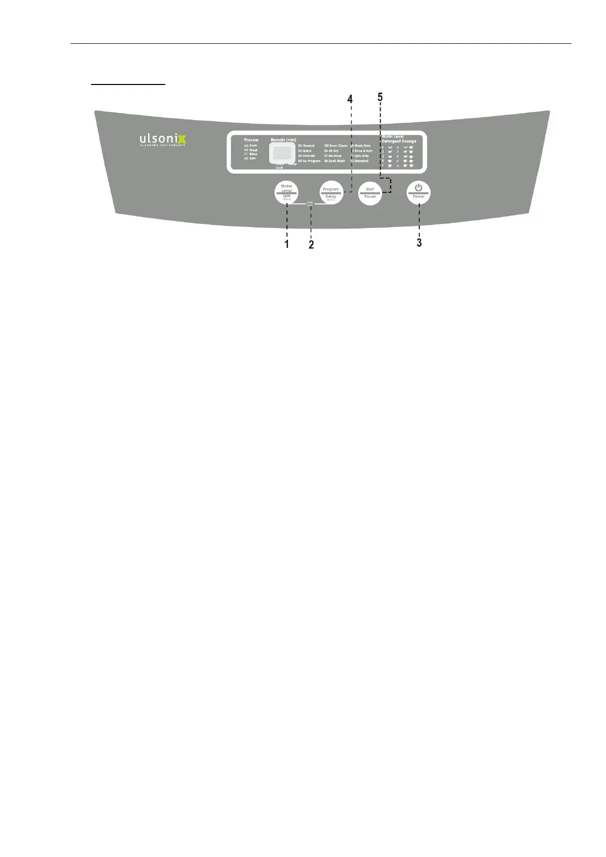 1 - Water Level /Spin (Hold 3s): Nacisnąć ten przycisk, aby ustawić poziom wody w programie od 1-A. Przytrzymać