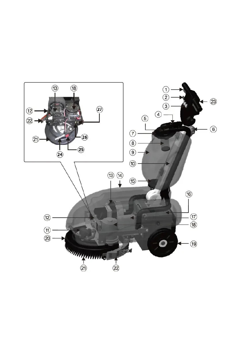 The device is designed for wet cleaning of concrete, epoxy, tiled floors, etc. The machine