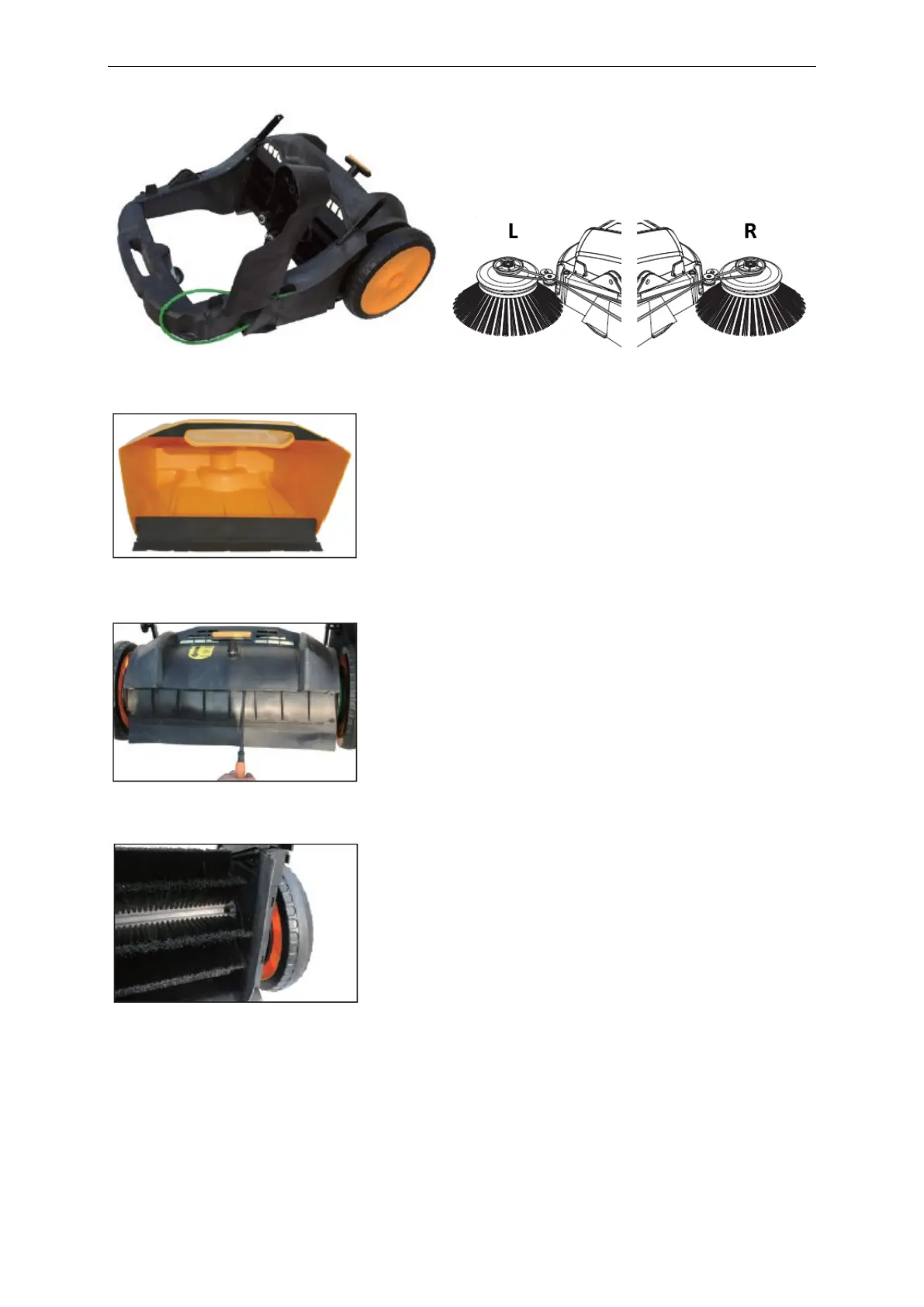 • Das Kehrmaschinengehäuse kann mit Wasser oder einem feuchten Tuch gereinigt werden.