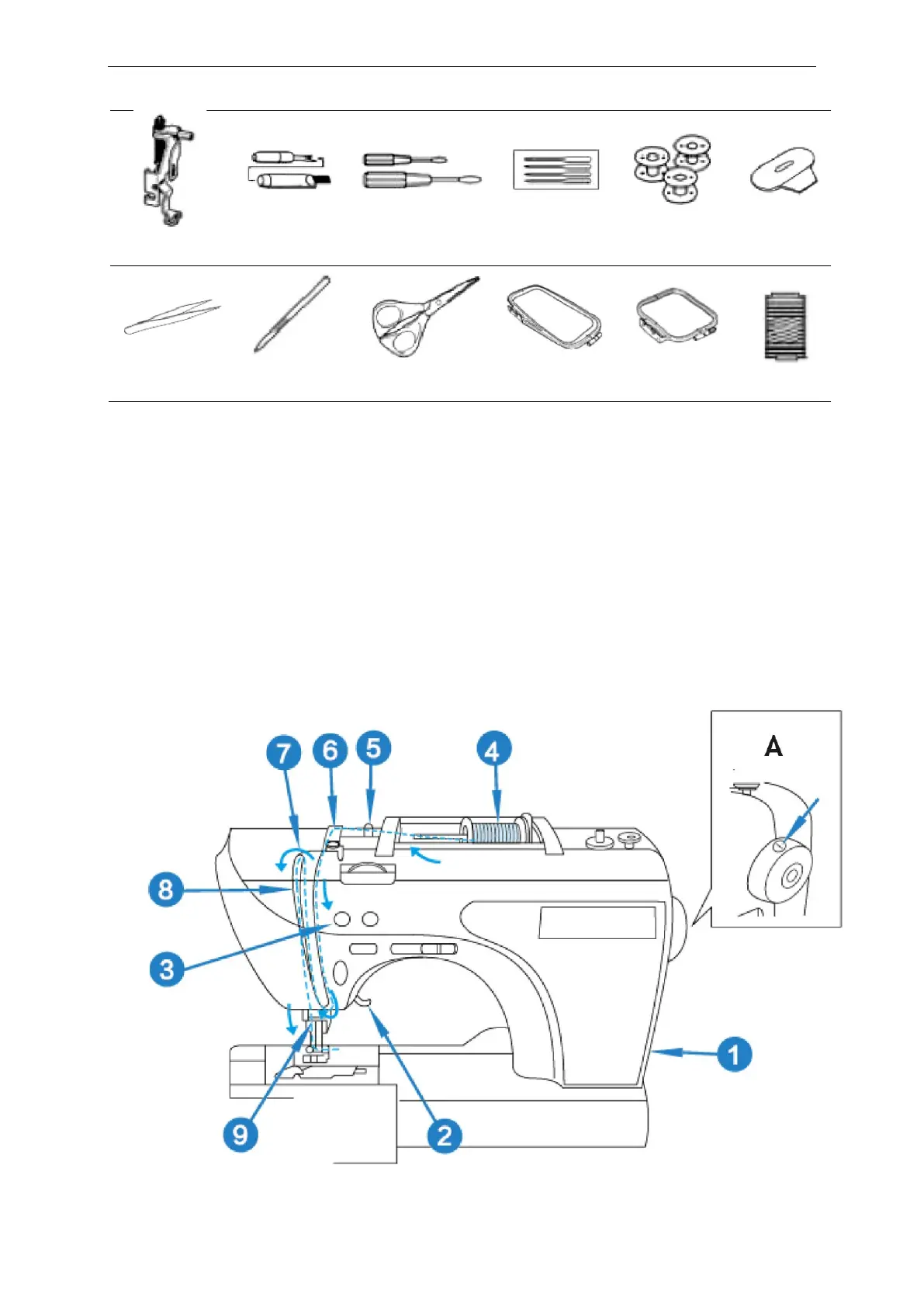 Einfädeln der oberen Linie