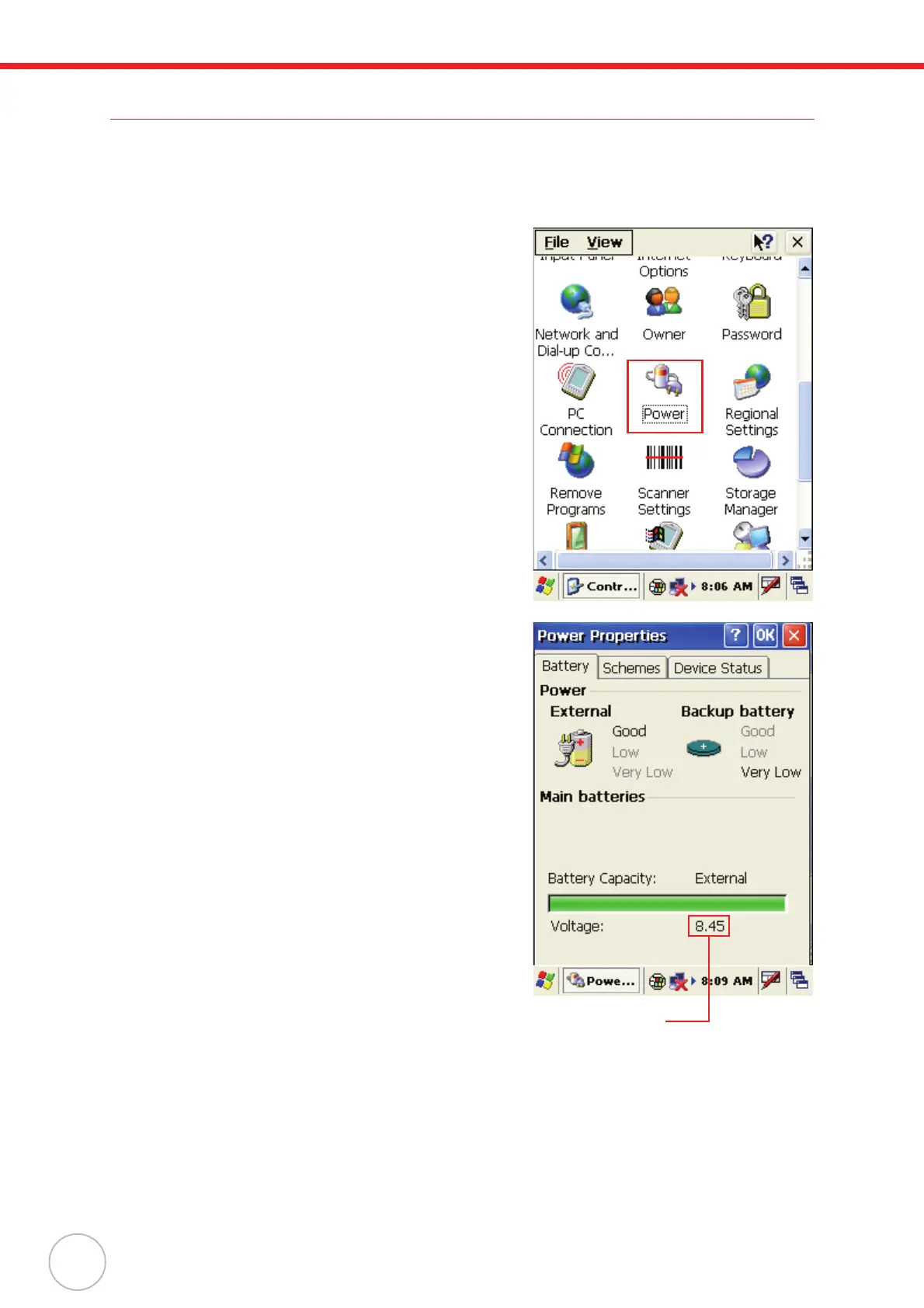 This section describes how to view the power level for both the main and backup battery. To minimize