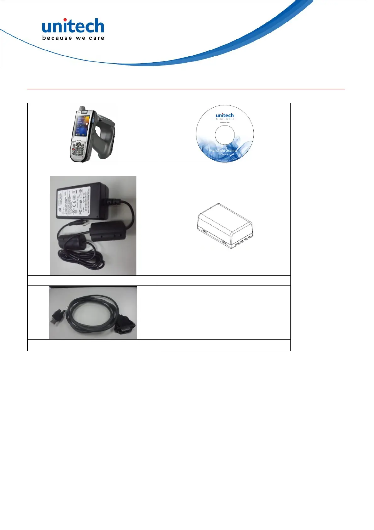 以下の項目が Unitech RH768 のボックスに入っていることを確認して下さい: