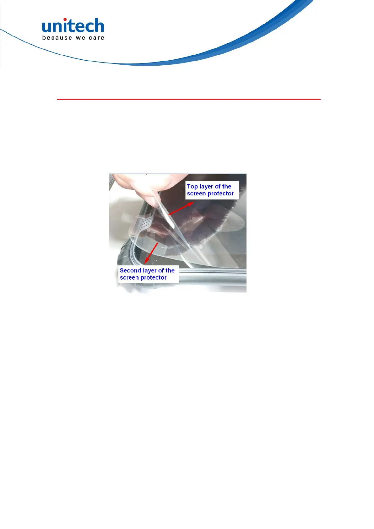 of the screen protector. Kindly pull on the white tab and remove the top layer of