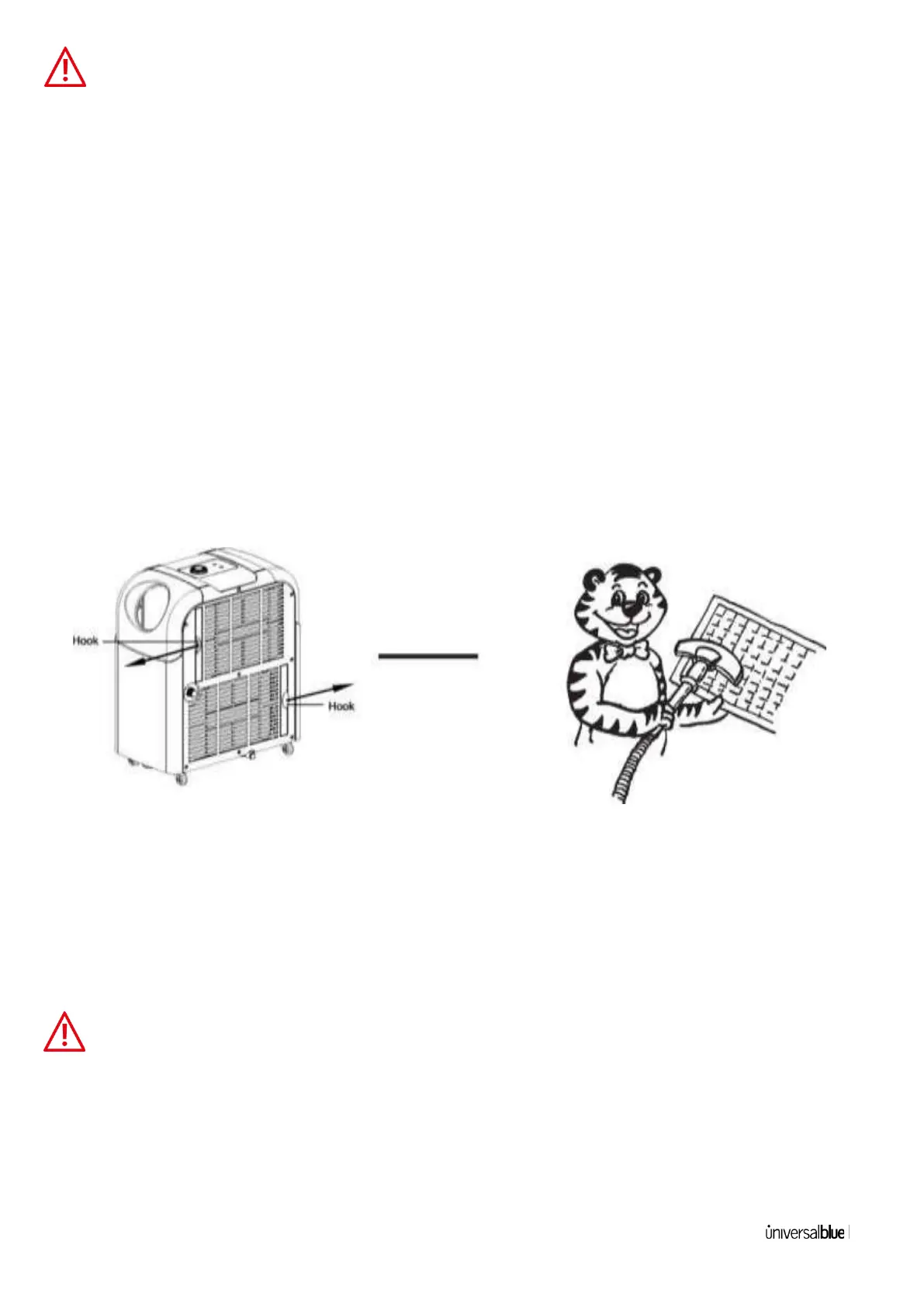 air flow will be reduced. Clean the filter once every two weeks.