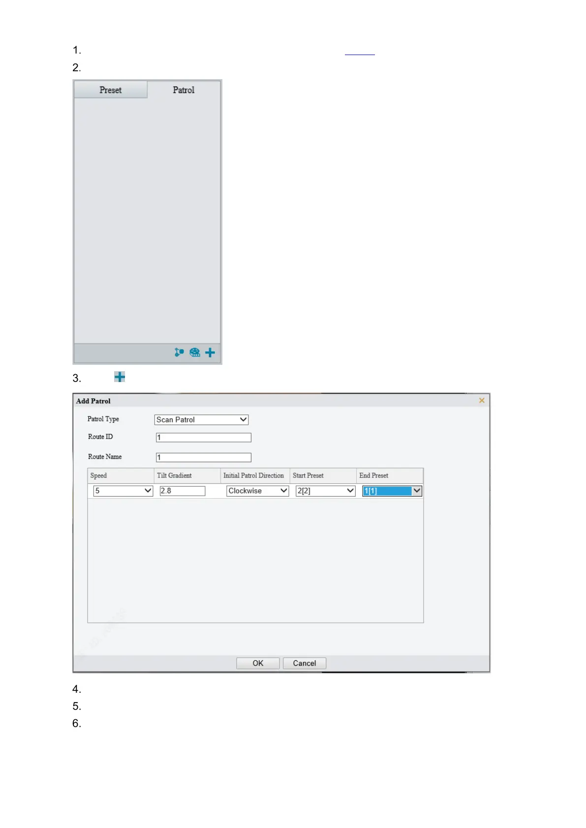 Before adding a scan patrol route, set presets first. See Preset for details.