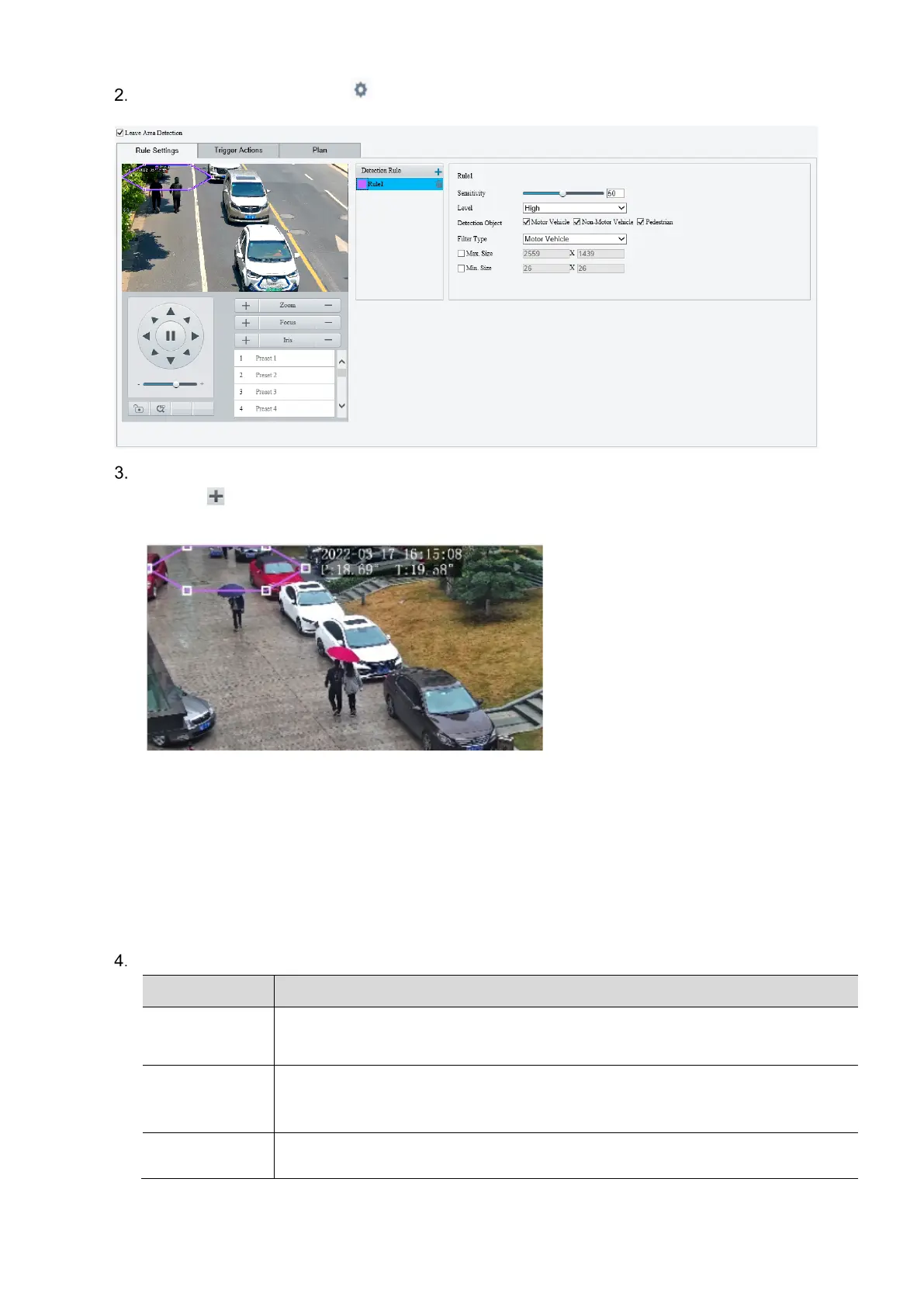 (1) Click to add a detection area. The detection area is a hexagon by default. Up to 4 detection