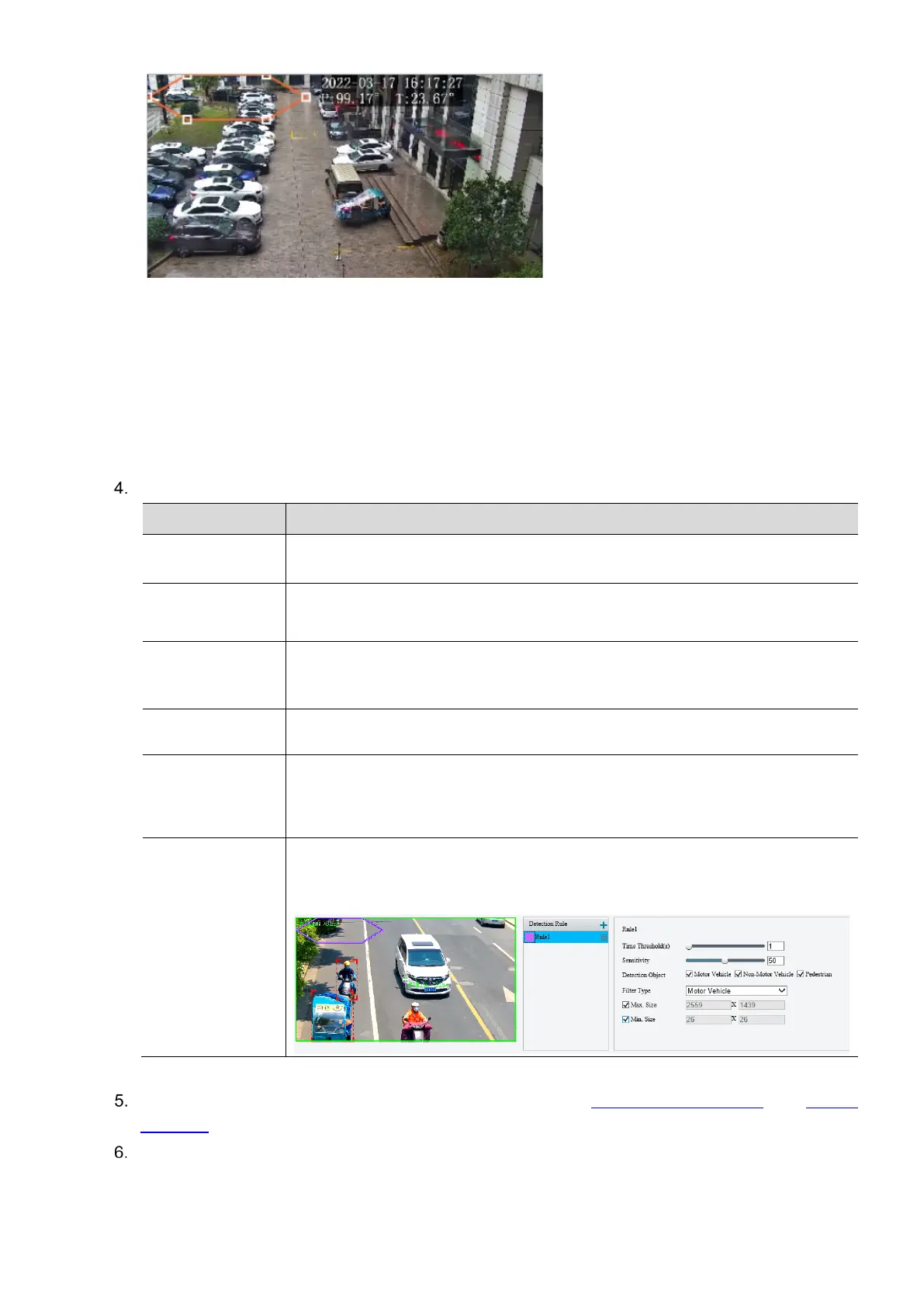 If an object stays in the detection area for the set time, an intrusion alarm will be triggered.