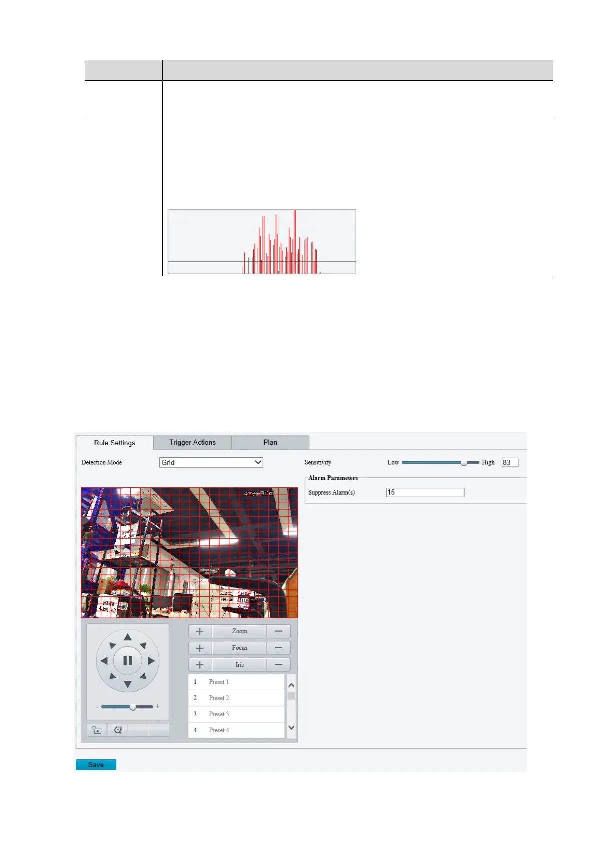means motions that have triggered a motion detection alarm. The height of the lines indicates