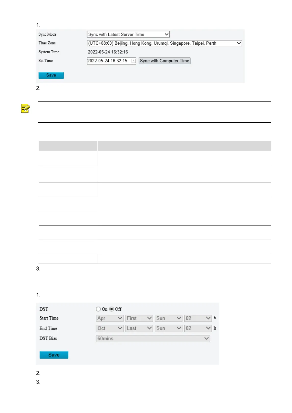 Sync with Computer Time The camera syncs time with the client computer from which you log in to the camera.