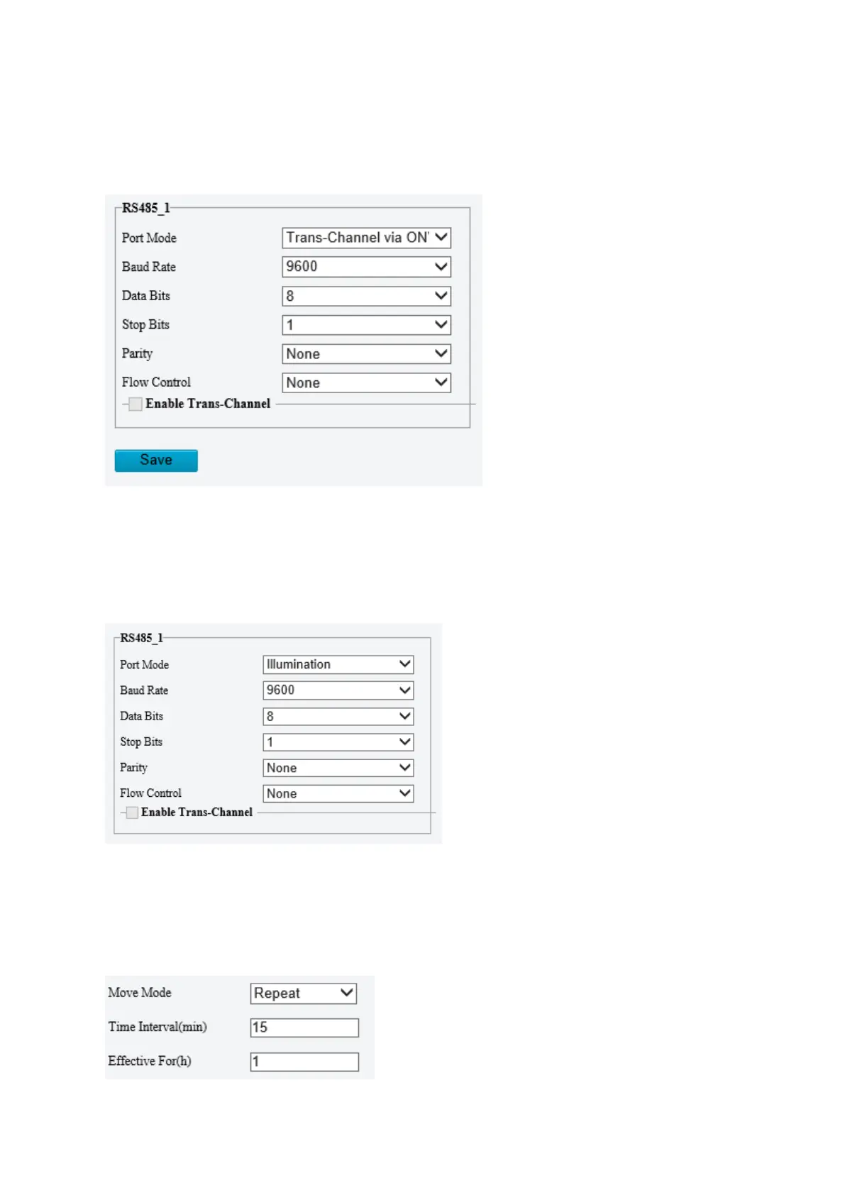 Use the RS485 port to transmit data between the camera and the third-party illuminator.
