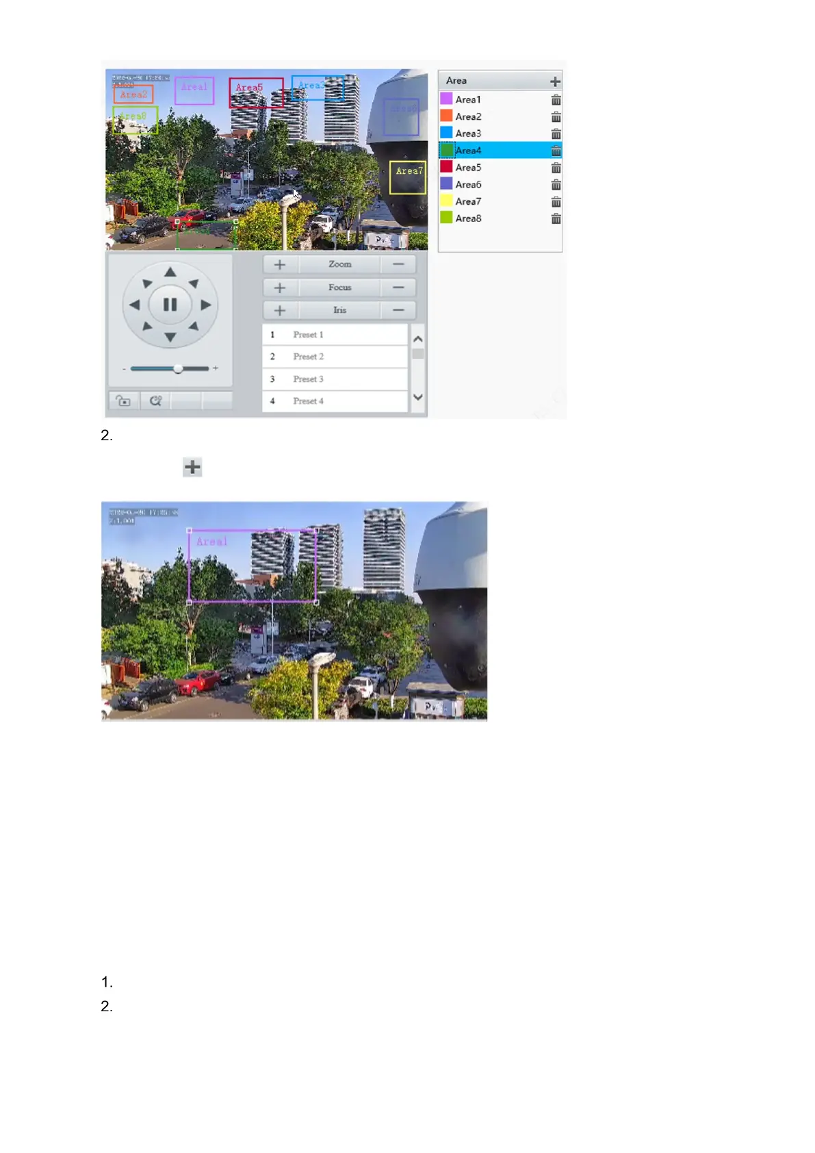 (1) Click to add a ROI area. The area is a rectangle by default. Up to 8 areas are allowed.