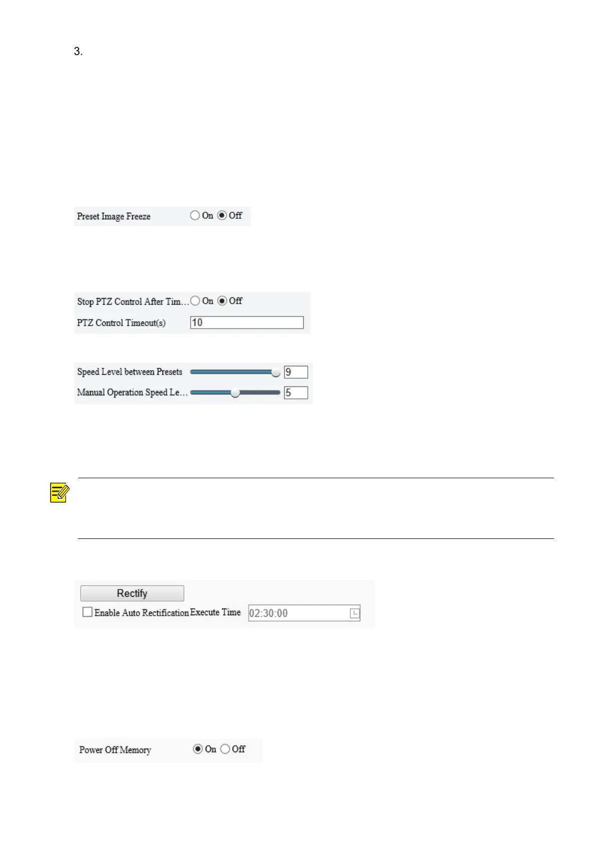 When enabled, the system will record the last position of the PTZ and lens in case of power failure. This