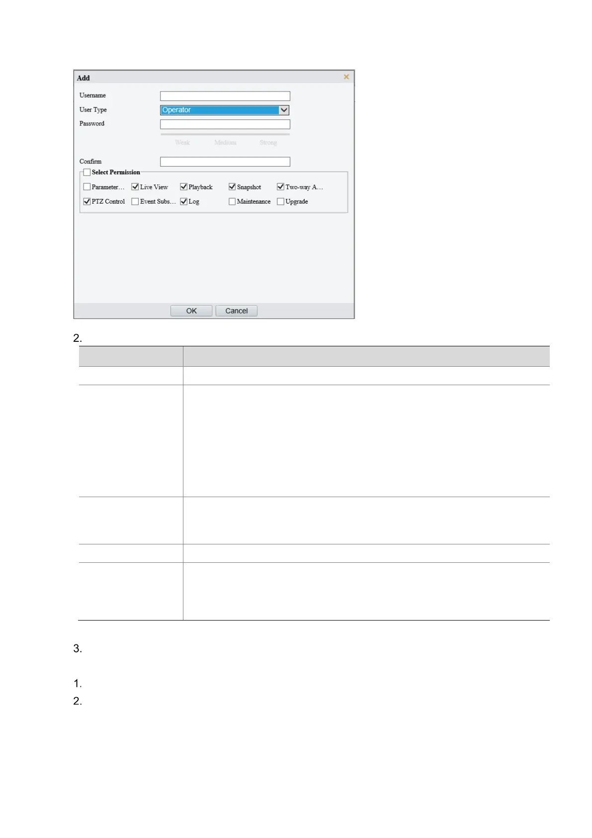 • Operator has higher privilege than common user and can configure in the web