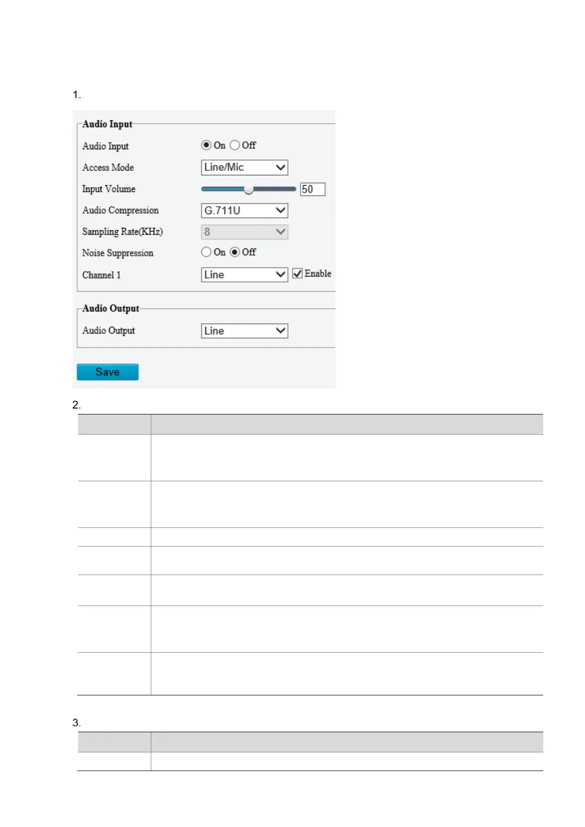 check box to enable audio input for the channel. Channel 1 and Channel 2 (if