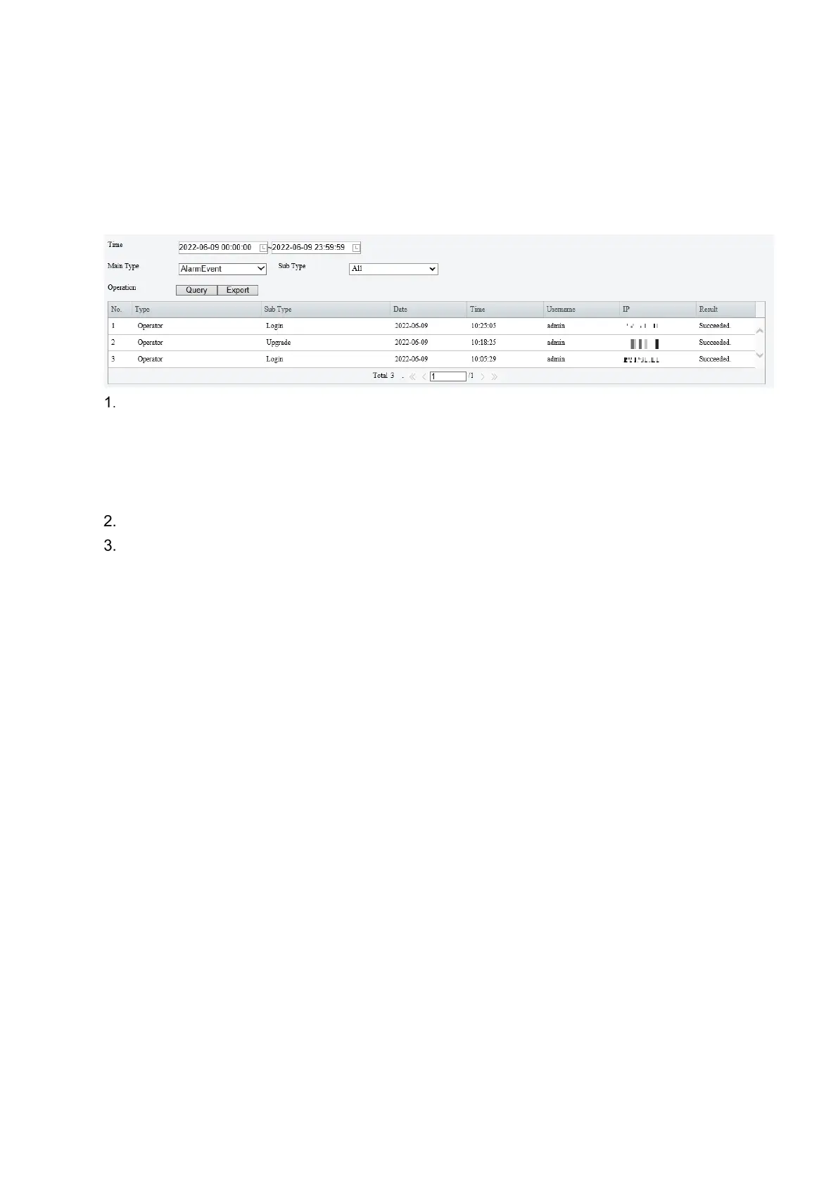 Click Search. Up to 100 logs can be displayed. The latest logs are displayed on the top.
