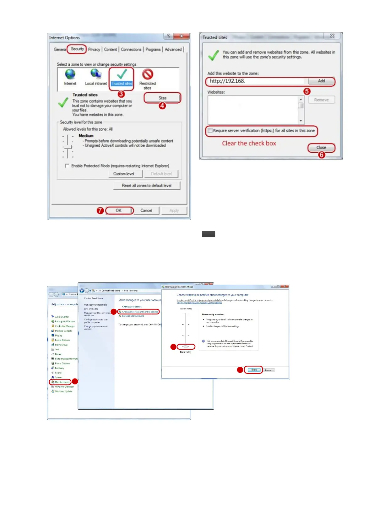 Before you access the camera, it’s recommended to set User Account Control to Never notify as