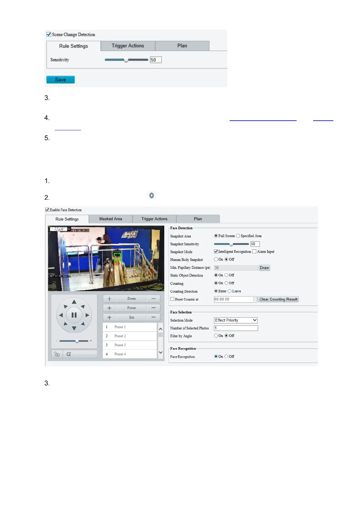 Set the face detection rule.