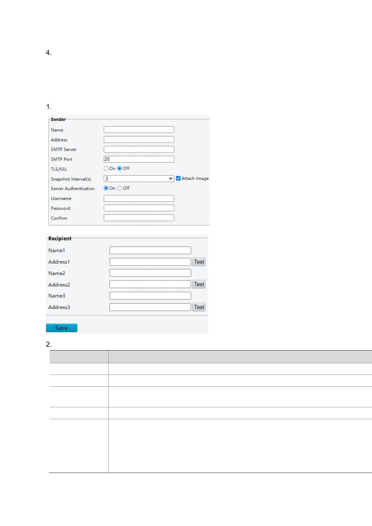 • The interval for taking snapshots attached to alarm e-mails is subject to the settings on the E-mail