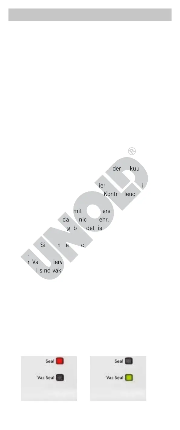 wird der Beutel versiegelt: die Kontrollleuchte zeigt dies