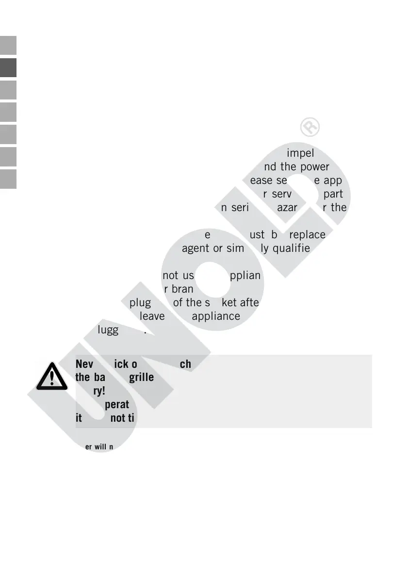 24. Never stick objects such as fingers, needles, pins, etc. through