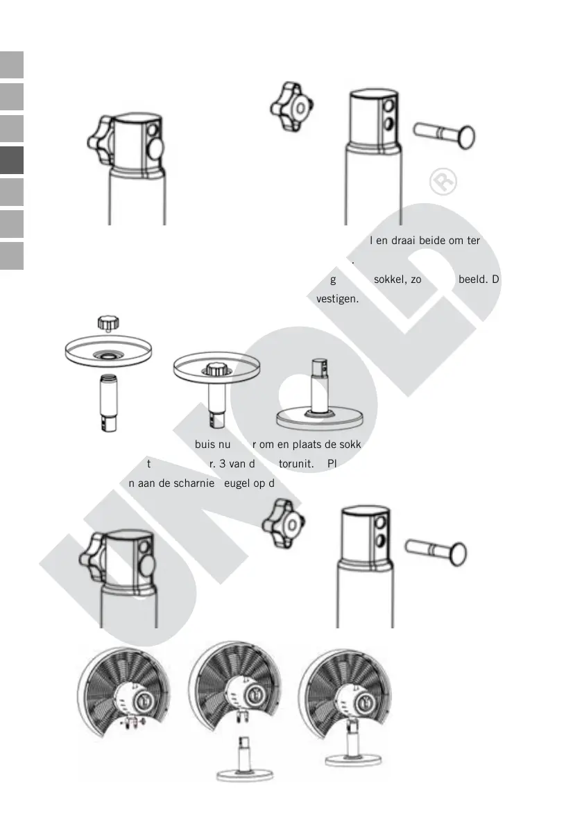 bout vast om de sokkel aan het ventilatorhuis te bevestigen.