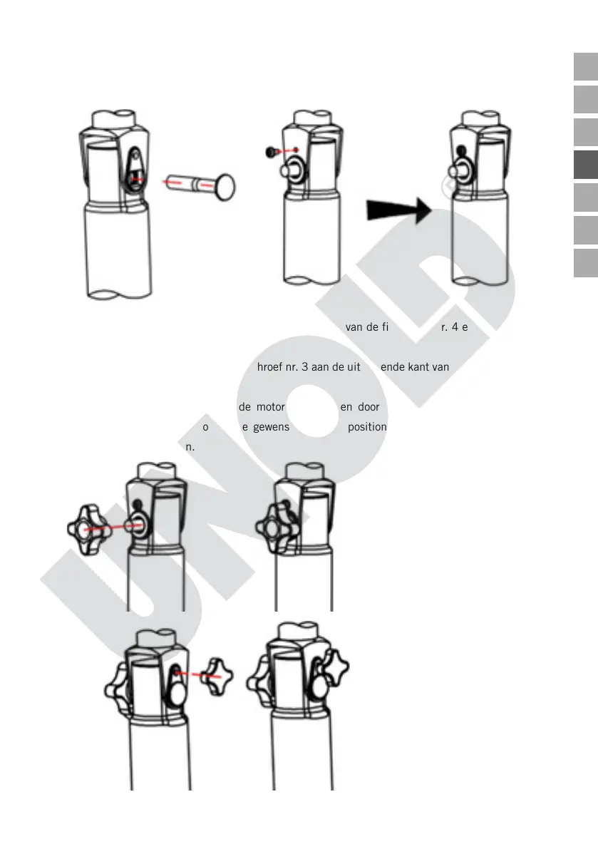 te draaien, de motorunit onder de gewenste hoek te positioneren en vervolgens opnieuw de